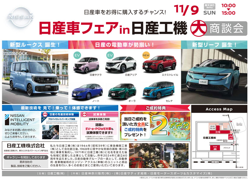11月9日(日)10:00~15:00 『日産車フェアin日産工機』を開催します!!